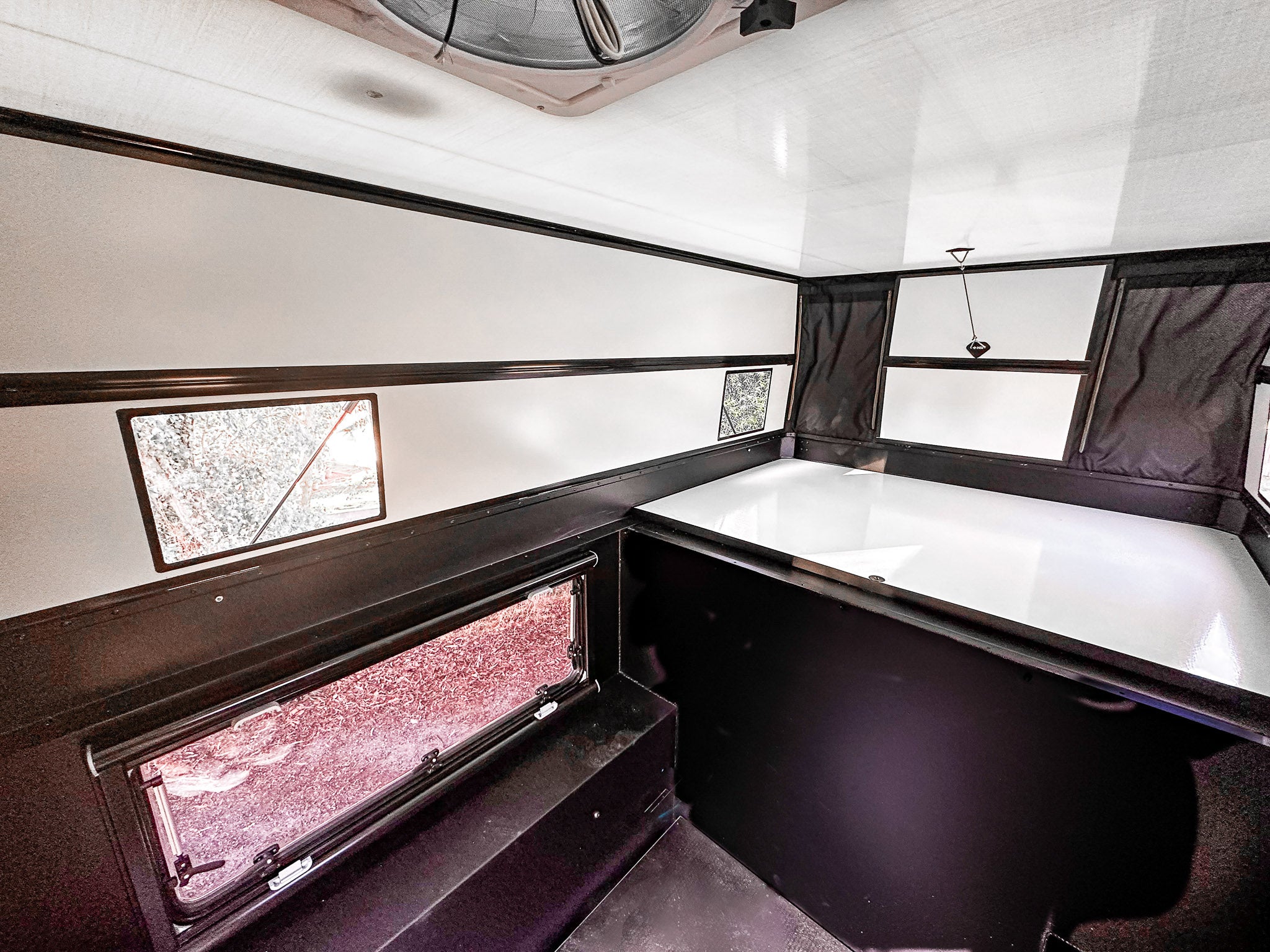 Slide-In campers feature a fully enclosed aluminum construction with sealed Arctic Tern doors and windows, EPDM gaskets, and zero exposed seams. The result?